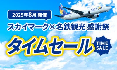 2025/08/29サンプル名鉄観光スカイマーク利用のダイナミックパッケージなら出発21日前までキャンセル料無料!年末年始の旅行は早めのご予約がオススメ 名鉄観光サービス株式会社(本社:愛知県名古屋市、代表取締役社長:岩切道郎)は、2025年8月29日(金)より、...