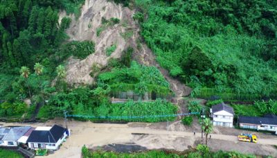 2021/09/16社会news県内は16日、台風14号に向かって暖かく湿った空気が流れ込んだ影響で大気の状態が不安定となり、宮崎市で1時間に60・5ミリの非常に激しい雨が降った。同市は木花、青島地区に警戒レベル5の「緊急安全確保」を発令。同市内海地区では家屋に土砂が流...