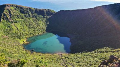 2021/08/30県内一般ニュース8月の大雨の影響で、霧島連山最高峰の韓国岳(からくにだけ・えびの市、1700メートル)の火口に、雨水をたたえた青々とした池が現れている。快晴となった29日、普段は水のない火口の美しい表情を写真に残す登山者らの姿が見られた。 えびの...