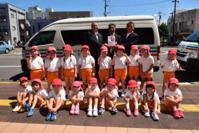 小林市にコミュニティーバス寄贈 自治体新電力会社