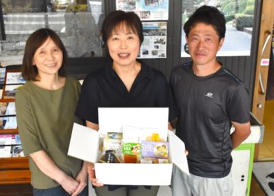 2021/06/12地域の話題高千穂町の農産加工グループ5団体でつくる「T―キッチン」(坂本佐代美代表)は、今夏も町産の農産物加工品詰め合わせ「ふるさと便」を販売する。 お中元などに人気で、今季は釜いり茶(新茶)、棚田米の米粉クッキー、キンカンの甘露煮とドライ...
