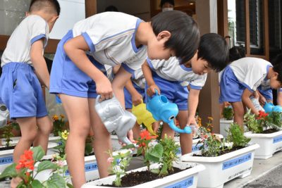 植栽で世代間交流 飫肥こども園で「花いっぱい運動」
