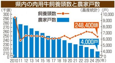 2025/08/27県内一般ニュース29万7808頭の牛や豚が犠牲となった2010年の口蹄疫終息から、27日で15年になった。県内の肉用牛飼養頭数は同年4月の発生直前から15%減少し、今年2月時点で24万8400頭。農家の戸数も4千戸と、当時の半数以下となった。高齢化や子牛...