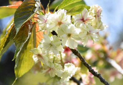 サクラ「御衣黄」「鬱金」が見頃 串間市の普門寺