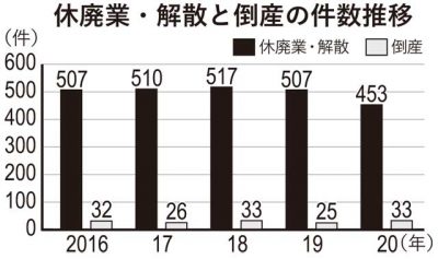 県内 休廃業・解散453件 資金繰り支援で前年比減