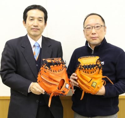 県産牛ミット全47校に寄贈 宮崎市のメーカー
