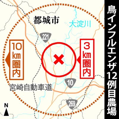 都城の鳥フル、疑似患畜 3万9千羽殺処分