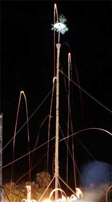 2025/08/24県内一般ニュース串間市に伝わる大蛇退治の伝説を再現した「都井岬火まつり」(くしま活性化委員会主催)は23日、同市の都井岬であった。高さ約30メートルの柱の先端を目がけて投げられたたいまつが、夏の夜空に幻想的な炎の弧を描いた。 大昔、衛徳坊(えいと...