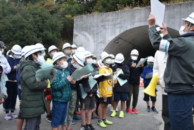 東九州道の工事手順学ぶ 生目小6年生、修学旅行で現場見学