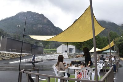 大自然囲まれバーベキュー 延岡・ひでじビールがテラス設置