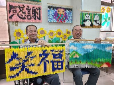 折り鶴アート制作「生きがいに」 小林、半身まひの男性2人