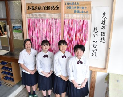 これまでの感謝込め校舎に折り鶴 閉校する都農高で生徒ら
