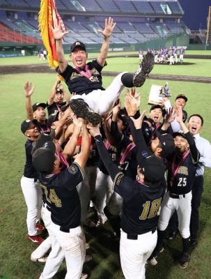 2025/10/19県内一般ニュース第59回宮日早起き野球県大会(宮崎日日新聞社主催、宮崎市早朝野球連盟主管、マルエイ自動車オートピア21特別協賛、ナガセケンコー協賛)最終日は18日、宮崎市のひなたサンマリンスタジアム宮崎で行われ、決勝で中村消防防災(宮崎)が黒瀬水産(串間...