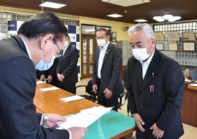 2020/05/13地域の話題日之影町議会(甲斐徳仁議長)は13日、新型コロナウイルス感染対策に関する提言書を町に提出した。 提言内容は「総合的な相談窓口の設置」「迅速な情報提供と事業支援の継続」「感染予防のためのガイドライン作成」「学生等の意向調査と支援対策...