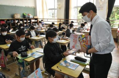 2020/04/16きょうの出来事新型コロナウイルス感染拡大の影響で休校している日南市の小中学校24校は16日、登校日を迎えた。約1週間ぶりに友達と会えた児童からは「早くみんなと遊びたい」などの声が上がった。 同市戸高の吾田小(松田康宏校長、442人)では、マスク...