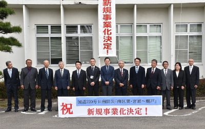 2020/04/09地域の話題日南市・国道220号の新しいルート、同市宮浦―鵜戸の1・7キロが新規事業化されたことに伴い、同市は3日、事業化決定を祝うセレモニーを市役所で行った。日南防災・南区間(同市宮浦―風田、11・2キロ)の一部で、土砂災害時の集落孤立などを解消す...