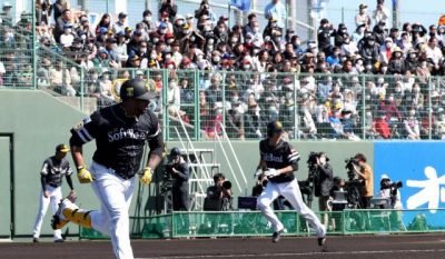 2020/02/24県内一般ニュース宮崎市で春季キャンプを張るプロ野球のオリックス・バファローズと福岡ソフトバンクホークスのオープン戦は23日、同市の清武総合運動公園SOKKENスタジアムであった。今季、県内で行われる唯一のオープン戦で、県内外から約4千人が来場。新型コロナ...