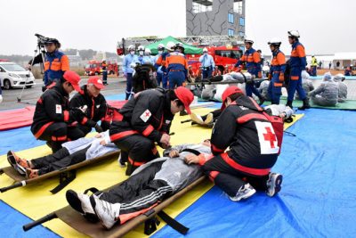 2020/01/26きょうの出来事南海トラフ巨大地震を想定した宮崎市の総合防災訓練は26日、市内各所であった。市消防局や消防団、県警など60機関約3千人が、倒壊した建物からの救助やライフライン復旧の手順などを確認した。 訓練は3年おきに開催。午前9時半に四国沖を震...