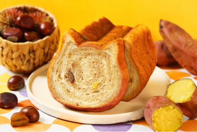 【ほくほく栗×2種のサツマイモ】「ねこねこ」より“甘栗かのこ”と“なると金時&紅あずま”の味わいを楽しめる『ねこねこ食パン 栗とサツマイモ』を新発売!ぐるぐる模様に仕上げたほっくり甘い季節フレーバー!