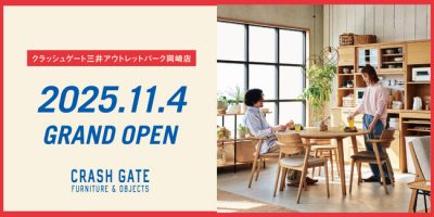 2025/10/20サンプル株式会社関家具 株式会社関家具(福岡県大川市、代表取締役社長:春田 秀樹、以下関家具)が展開するインテリア ショップ「CRASH GATE(クラッシュゲート、以下クラッシュゲート)」は、「クラッシュゲート 三井アウトレットパーク岡崎店」を2...