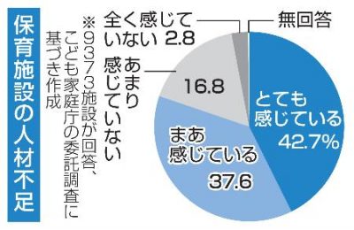 保育施設「人材不足」80% 運営に苦労、こども庁調査