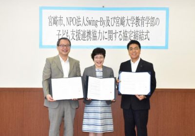 2019/07/17県内一般ニュース生活困窮世帯の子どもたちを学習面で連携して支援しようと、NPO法人Swing―By(宮崎市、高橋好香代表)と宮崎大教育学部(藤井良宜学部長)、宮崎市は16日、協定を結んだ。市が支援を必要とする子どもの情報を同法人に提供し、大学生が学習をサ...