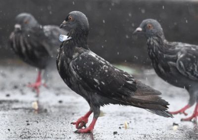 ハトの首に矢? 宮崎港で発見