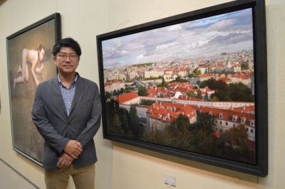 2019/06/20県内一般ニュース「みやにち夢ひろがる小品展」審査員を務める画家で、佐賀大准教授の小木曽誠さん(43)=佐賀市=の個展「無限の狭間(はざま)」が19日、東京都中央区の日本橋三越本店で始まった。ヨーロッパの風景や人物などを描いた、4~130号の油彩画30点を...