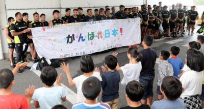 子どもたちにレガシーを 都農の児童、ラグビー日本代表と交流