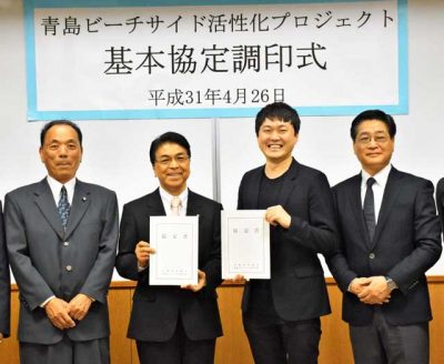 2019/04/27県内一般ニュース宮崎市青島2丁目の旧青島橘ホテル跡地開発で、優先交渉権者となっていた「青島プロジェクト」(山本順二社長)と土地所有者の折生迫財産区(管理者・戸敷正宮崎市長)は26日、事業実施に向けた基本協定を結んだ。同社は宿泊、飲食施設などの整備を計画。...
