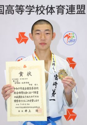 2025/08/10県内一般ニュース中国地方を主会場とする全国高校総体(インターハイ)第17日は9日に各地で行われ、空手男子組手個人の中村達人(宮崎第一3年)が優勝した。今大会の県勢では3個人2チームに続く日本一。 中村は2回戦から登場し、準決勝は0―0の判定勝ち。...