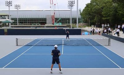 プロが試打「世界基準」お墨付き 宮崎県庭球場、ハードコートに改修