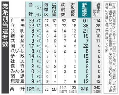 自公改選47、衆参で少数与党に 国民17、参政14に大幅増2025/07/21国内外ニュース 主要第27回参院選は21日、全125議席の当選者が確定した。自民、公明両党は改選議席の計66から47に減らす大敗を喫し、非改選75と合わせても参院全体の過半数(125)を割り込んだ。衆院に続き参院でも少数与党に転落したことで、石破茂首相(自民... 続きを読む