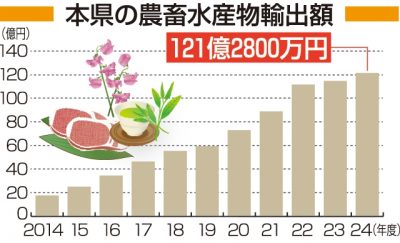 本県農畜水産物輸出額、13年連続で過去最高 24年度は121億円超に