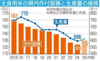 2025/05/24県内一般ニュース2025年産主食用米の本県作付面積について、農林水産省が前年から増加に転じる見通しを公表した23日、増産へかじを切った県内生産者は取引先からの引き合いの強さに手応えを口にした。一方、高騰するコメ価格の先行きは不透明感があり、飼料用などから...