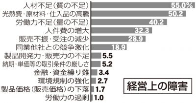 2025/10/29経済一般県中小企業団体中央会が会員組合を通じ県内600事業所に労働事情実態調査を実施したところ、原材料費や人件費の上昇に価格転嫁で対応した企業は47・4%にとどまり、全国平均(51・2%)を下回った。安定した経営を行うための「利益確保分」を70%...