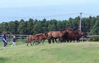 都井岬で伝統行事「馬追い」