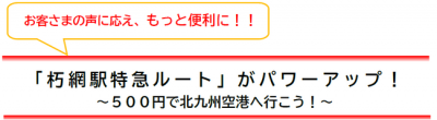 お客さまの声に応え、もっと便利に!!「朽網駅特急ルート」がパワーアップ!~500円で北九州空港へ行こう!~【共同リリース】