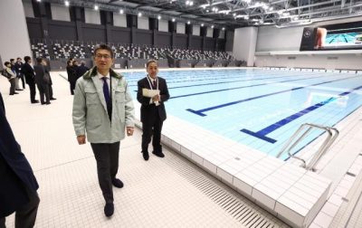 知事「高レベル、充実」 県陸上競技場とプール視察