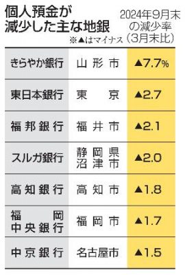 地銀40行、個人預金残高が減少 9月末、日銀利上げで競争激化