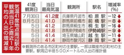 今夏の40度観測地、9割人出減 酷暑の駅周辺、外出控える