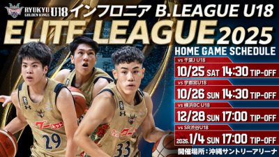 2025/09/18サンプル琉球ゴールデンキングス 2025年9月より開催されている「インフロニア B.LEAGUE U18 ELITE LEAGUE 2025」に出場しているキングスU18は10月から2026年1月にかけて、千葉J U18、宇都宮U18、 横浜BC...