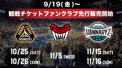 9月19日(金)より群馬・富山・京都の5ゲームのチケット販売開始