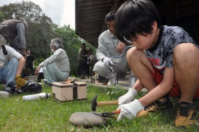 鉄くぎたたいて「マイ剣」作り 西都原考古博物館、20周年記念で家族ら体験