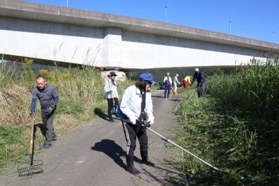 五ケ瀬川ジョギングコースで草刈り 女子駅伝チーム合宿前に市民ら