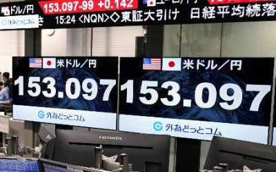 34年ぶり円安、153円台 米利下げの先送り観測で