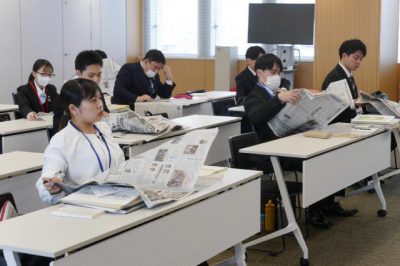 2024/04/10経済一般高鍋信用金庫(板垣衛理事長)は9日、宮崎日日新聞社のNIB(ビジネスに新聞を)出前講座を活用した研修を高鍋町の本店で開いた。新入職員11人が参加。当日の紙面を使いながら、効果的な読み方や日常業務に生かす方法などを学んだ。 NIB担...