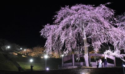五ケ瀬しだれ桜 夜間ライトアップ 4月2日まで