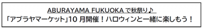 ABURAYAMA FUKUOKAで秋祭り♪ 「アブラヤマーケット」10月開催!ハロウィンと一緒に楽しもう!