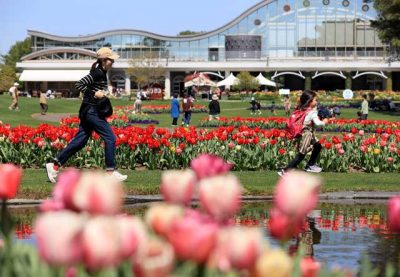 春のフローラル祭始まる 10万本の花々 家族連れら楽しむ